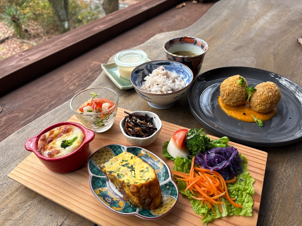 ママさんが作るランチなど、そしてそれをのせている器も楽しみながら、オススメのテラス席でのんびり森林浴をしにきてはいかがですか?
